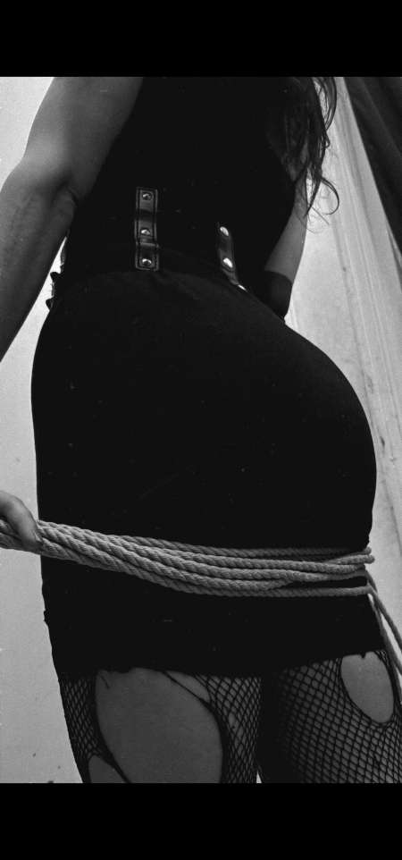 Je suis une jeune dominatrice brune ayant un style gothique, fan de harnais, de collants et de robe noire