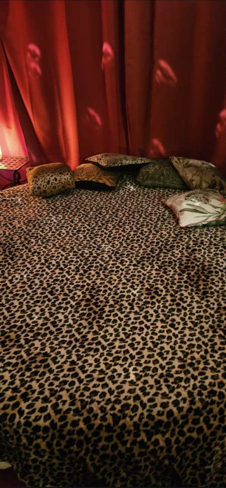 Je recois dans un salon privé dans une décoration adaptée , Ambiance cosy, lumière tamisée, musique adaptée , lit rond, et petit bar avec boissons diverses offertes.